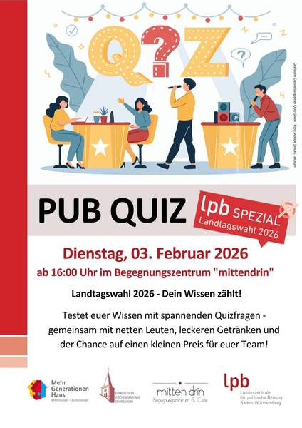 Testet euer Wissen zur kommenden Landtagswahl mit spannenden Quizfragen - gemeinsam mit netten Leuten, leckeren Getränken und der Chance auf einen kleinen Preis für euer Team!