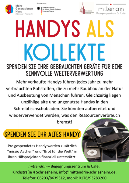 Die große silberne Metallbox im Eingangsbereich der Kirche wartet auf Ihre alten Geräte!